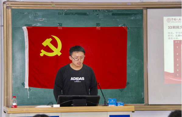 3月20日下午,我院第33期院党校积极分子培训班第一次党课在明德法学楼0202顺利举办。本次党课由朱青教授主讲,第33期院党校98名学生学员参加了本次党课。党课由学生党建工作部培训部部长韩子越主持。