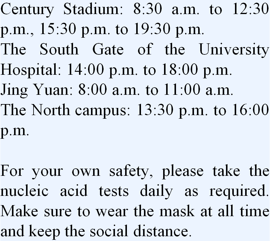 Are there nucleic acid test spots on campus? What’s there operating hours?