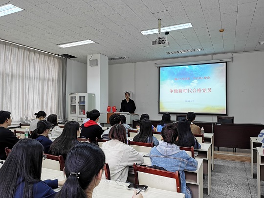 在4407举办本批党员发展对象培训班,学院党委副书记周炎、辅导员李昭娜和46名党员发展对象参加会议。