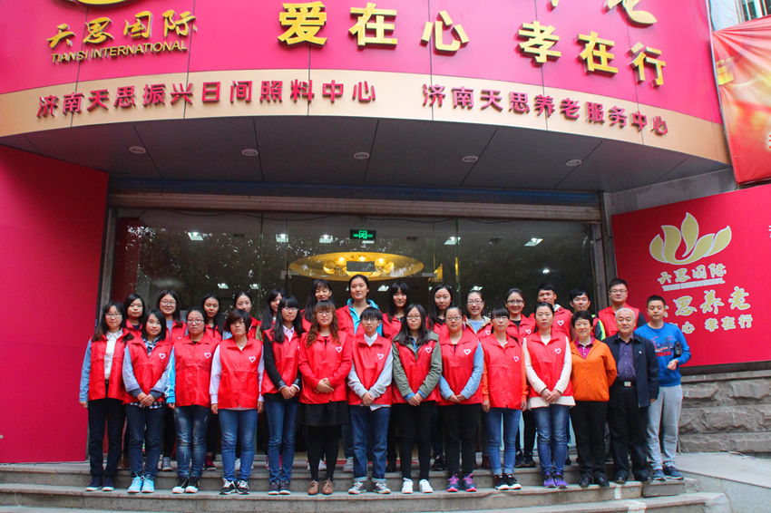 劳动与社会保障系24名学生代表现场宣誓加入济南天思国际养老服务中心养老服务志愿者队伍,立志努力学好专业知识,积极参与社会养老服务实践活动,为我国老年人养老服务事业发展做出更大贡献。