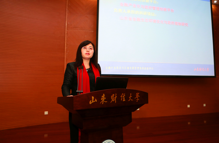 院长张红凤教授参加“金融产业优化与区域发展管理协同创新研究中心” 第一场系列研究成果发布会和第一期高端论坛。在发布会上,张红凤教授作为成果发布专家作了《金融产业优化与金融生态环境建设中政府行政管理创新》的成果汇报。