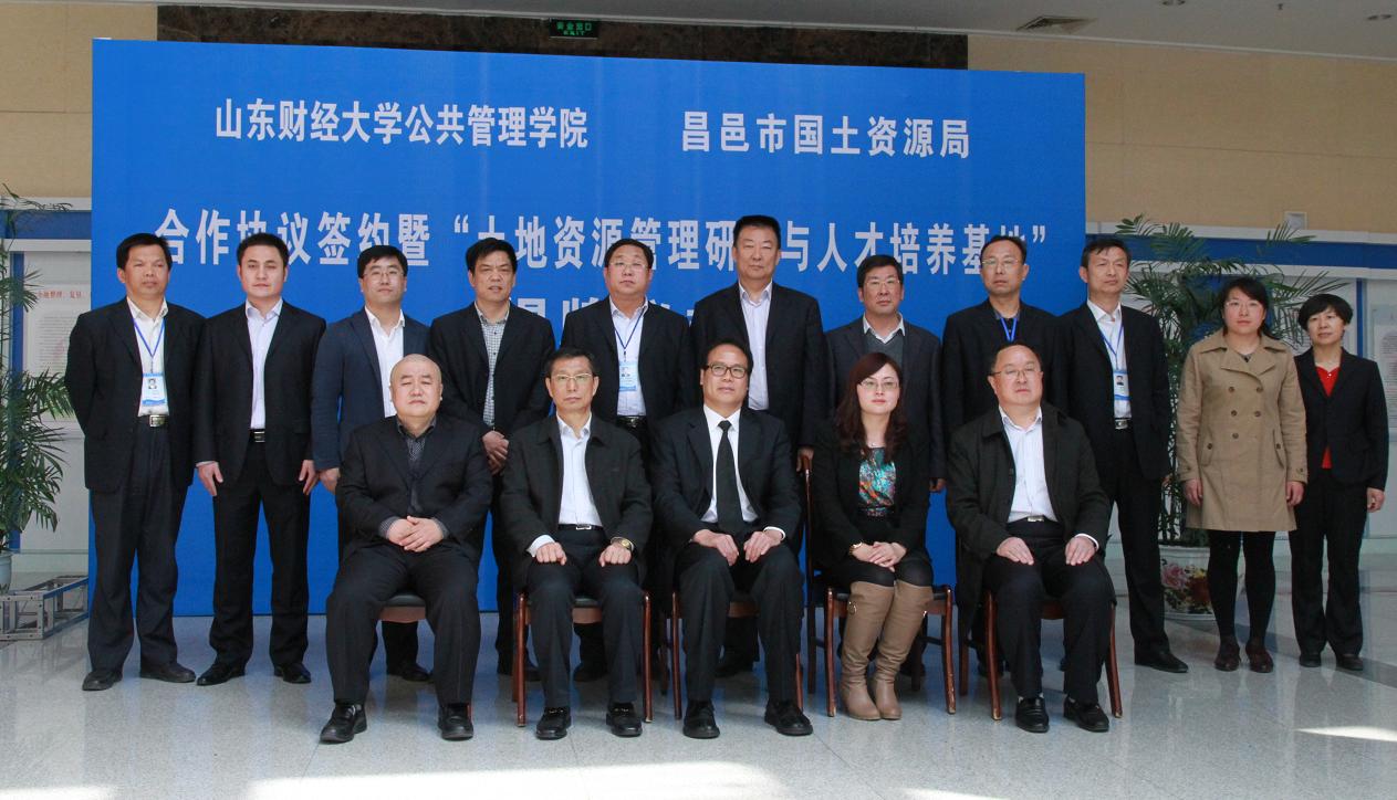 副院长李国锋、办公室主任张禹、土地资源管理教研室主任秦艳红老师和焦霄黎老师,昌邑局的班子成员、局机关及直属事业单位全体人员等一同出席签约和基地揭牌仪式。签约和基地揭牌仪式由昌邑市国土资源局党委书记崔法贵主持。