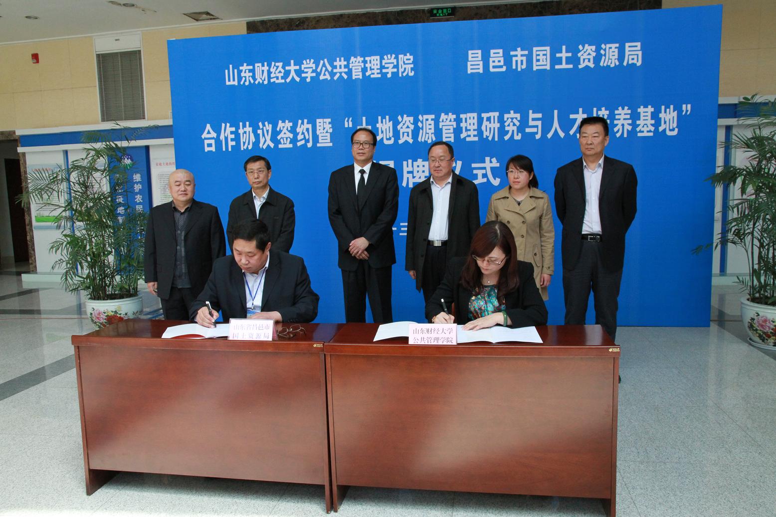 与昌邑市国土资源局全面合作协议签约暨“土地资源管理研究与人才培养基地”揭牌仪式在昌邑举行。学校党委委员、副校长吴彬教授出席签约仪式,并与潍坊市国土资源局党委委员孙希志共同为“土地资源管理研究与人才培养基地”揭牌。成人台小说