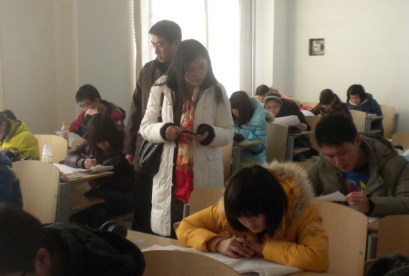期末考试巡视组到圣井校区、明水校区、舜耕校区进行视察。张院长认真视察了成人台小说
