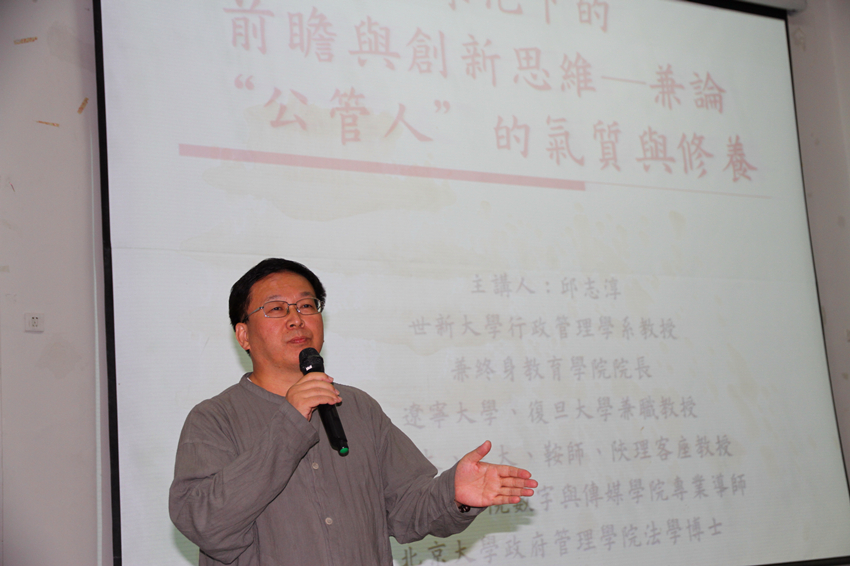 9月26日晚,公共管理大讲堂(第三十七讲)在明水校区5201举行。台湾世新大学行政管理学系教授、终身教育学院院长、北京大学政府管理学院法学博士邱志淳教授为成人台小说