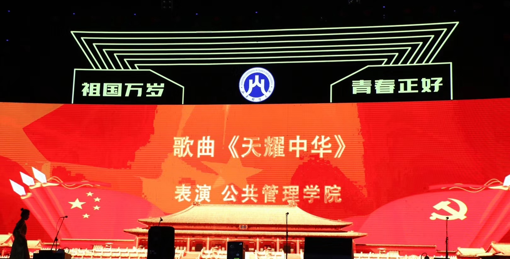 青春是一首歌,与国同响,青春是一支舞,为国飞扬,青春是一首诗,报国激昂。在学生合唱团深情合唱《我和我的祖国》的歌声中,晚会走向尾声。台下观众挥动荧光棒,齐声合唱,现场变为律动的海洋。歌舞虽有散场,青春永在路上。祝愿2019级全体新生在庆祝新中国成立70周年之际,青春飞扬,扬帆起航,与祖国、与财大共成长!