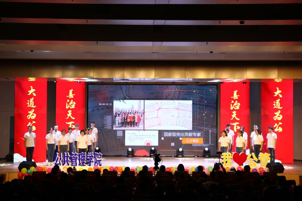 晚会首先迎来第一篇章:启程·公管心。由彩虹糖乐队为大家带来演唱《Lucky strike》和《红日》,点燃现场观众们的青春热血。衣袂翻飞、舞姿轻柔,古典舞《水月霓裳》为我们呈现出一场唯美的视觉盛宴。相声《大学日记》围绕大学新生活,并穿插精彩的贯口表演,让人拍案叫绝。一曲独唱《化身孤岛的鲸》,细腻优美的歌词、婉转的曲调和温柔治愈的嗓音,将那温暖的故事娓娓道来。小合唱《公管之歌》将“大道为公,善治天下”的院训精神诠释的淋漓尽致。