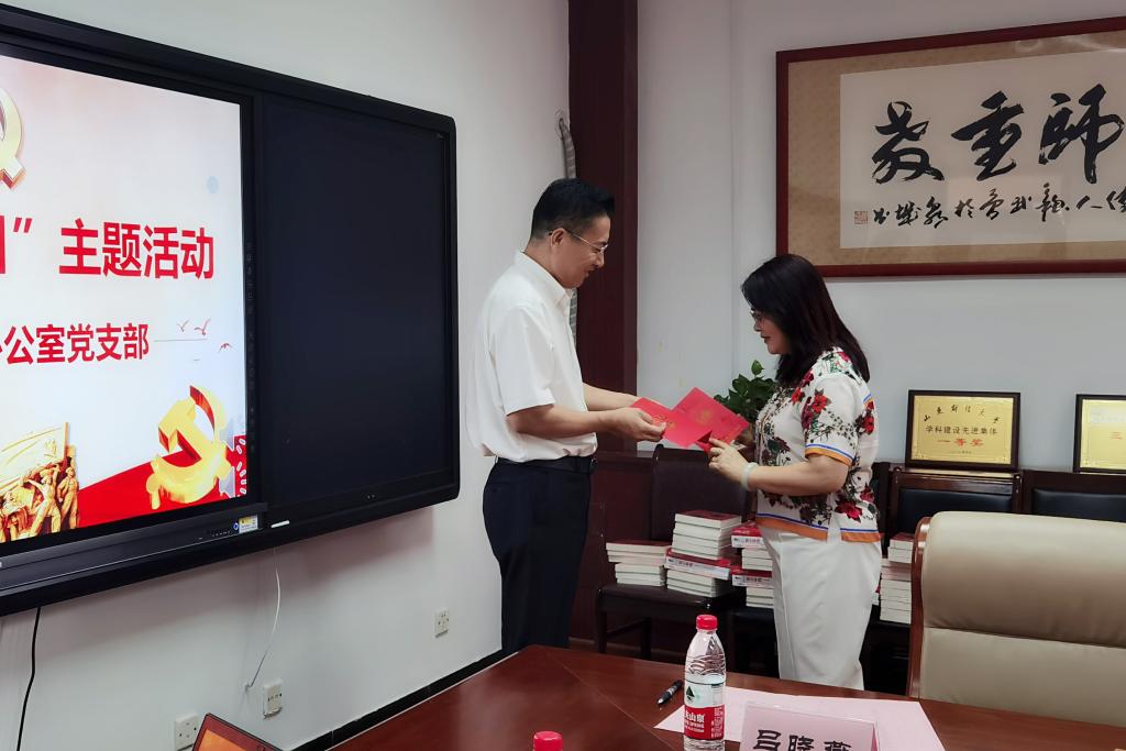 随后,院党委书记李国强同志和校组织部刘洪涛同志为过“政治生日”的党员赠送了贺卡和书籍。一张小小的贺卡,是对党员的激励,更是鞭策,让党员们再一次唤醒了“初心”,找到了归属,激发了争当合格党员的热情和主动作为的动力。当将记载着党员入党日期、入党誓词及勉励祝福语的“党员政治生日卡”送到过“政治生日”的党员手中时,收到贺卡的党员同志们内心的喜悦与感动溢于言表……他们现场分享了自己的心情及当年入党的故事,畅谈了入党以来不同时期、不同阶段的感受和体会,发表了“政治生日”感言。活动最后,大家一起观看了微视频《从红船到巨轮》。