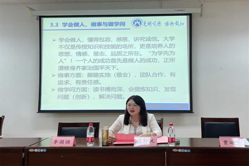 (通讯员 赵冠华 摄影 井钦磊)9月14日晚18点30分,学院在燕山校区4407举行了2021级研究生开学典礼暨入学教育大会。院长张红凤、党委书记李国强、副院长贾海彦、党委副书记周炎,研究生教学秘书朱艳,辅导员李昭娜以及2021级全体研究生参加了会议,会议由贾海彦主持。