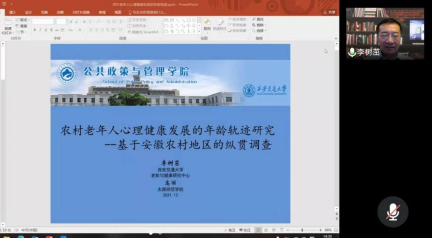 师生做了主题为“农村老年人心理健康发展的年龄轨迹研究”的线上学术讲座。讲座由贾海彦副院长主持,张红凤院长、学院教师及全体研究生参加。