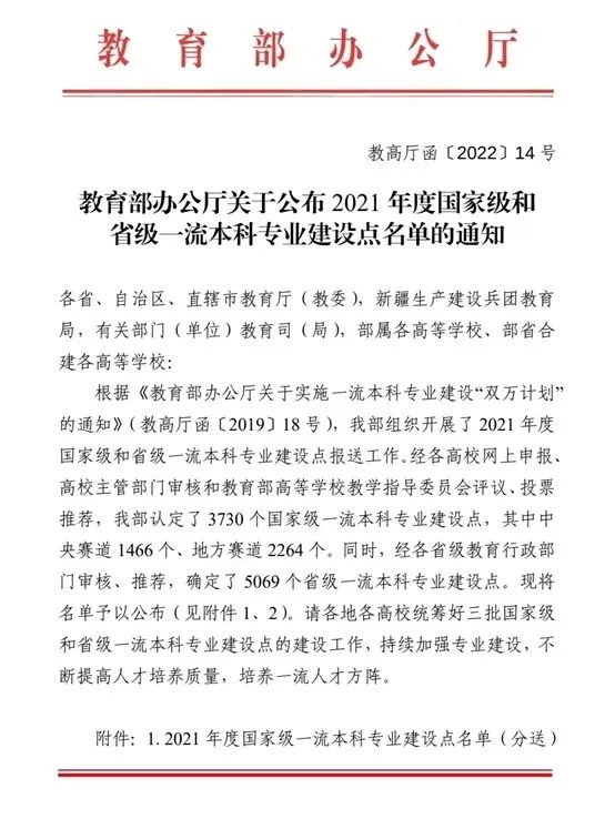 近日,根据《教育部办公厅关于公布2021 年度国家级和省级一流本科专业建设点名单的通知》(教高厅函〔2022〕14号),成人台小说