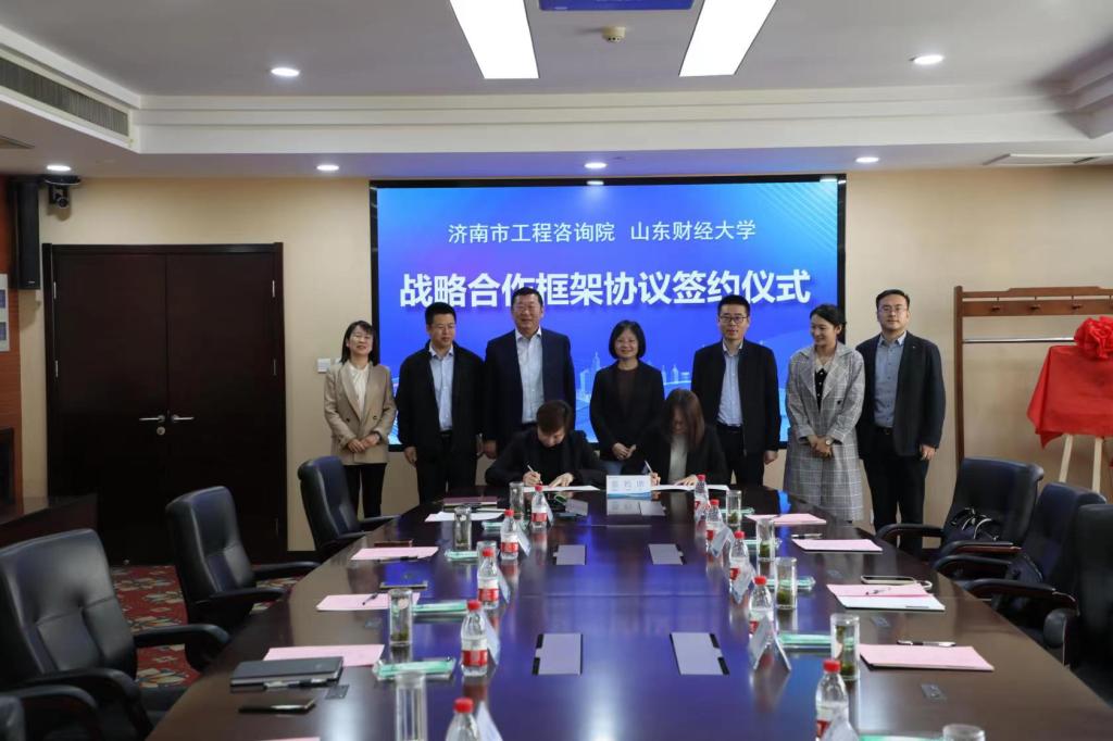 院长贾海彦、党委副书记许薇、副院长罗微、团委书记王超、城市与土地资源管理系副主任刘朝旭以及济南市工程咨询院院长牛艺光、副院长黄健、卢勇、副书记李燕及办公室主任孔祥瑞。