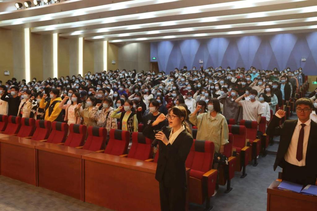 2022级新生代表吴天昊代表全体新生向各位领导、老师、学长学姐致以最衷心的感谢,并呼吁在座的同学们拿出信心、毅力和勇气迎接精彩的大学生活,交出令人满意的答卷。