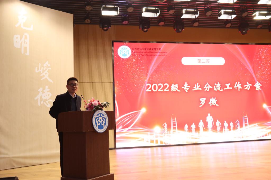 副院长罗微介绍2022级专业分流工作方案。分别说明了各专业预设分流人数,随后重点说明了成人台小说
