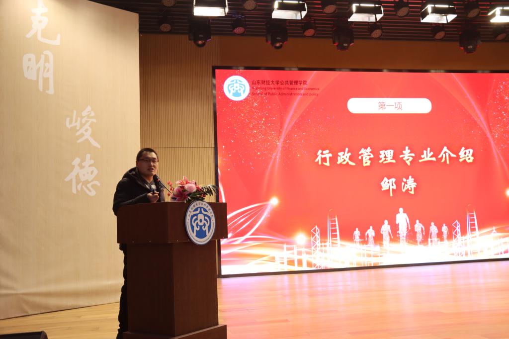 接下来,韩琭向公管学子介绍城市管理专业的相关事项,她以专业发展、专业特色、专业优势、毕业去向四方面展开解答,从城市管理专业分布的高校和学院特征等方面说明了该专业多样的人才培养模式,并表示城市管理专业正处于稳步发展状态,表达了对各位同学的期待。随后,邹涛进行行政管理专业的介绍,包括专业历史沿革、丰富师资特色和发展前景,向同学们展示了行政管理专业丰富的科研成果等专业优势,专业选择的基本因素相关课程的设置安排,此外,邹涛介绍了行政管理专业创新实验班的特色与优势,鼓励各学子努力深造。三位主任的介绍使公管学子对分流各专业有了更加清晰深刻的认知,易于更好展开未来规划选择。