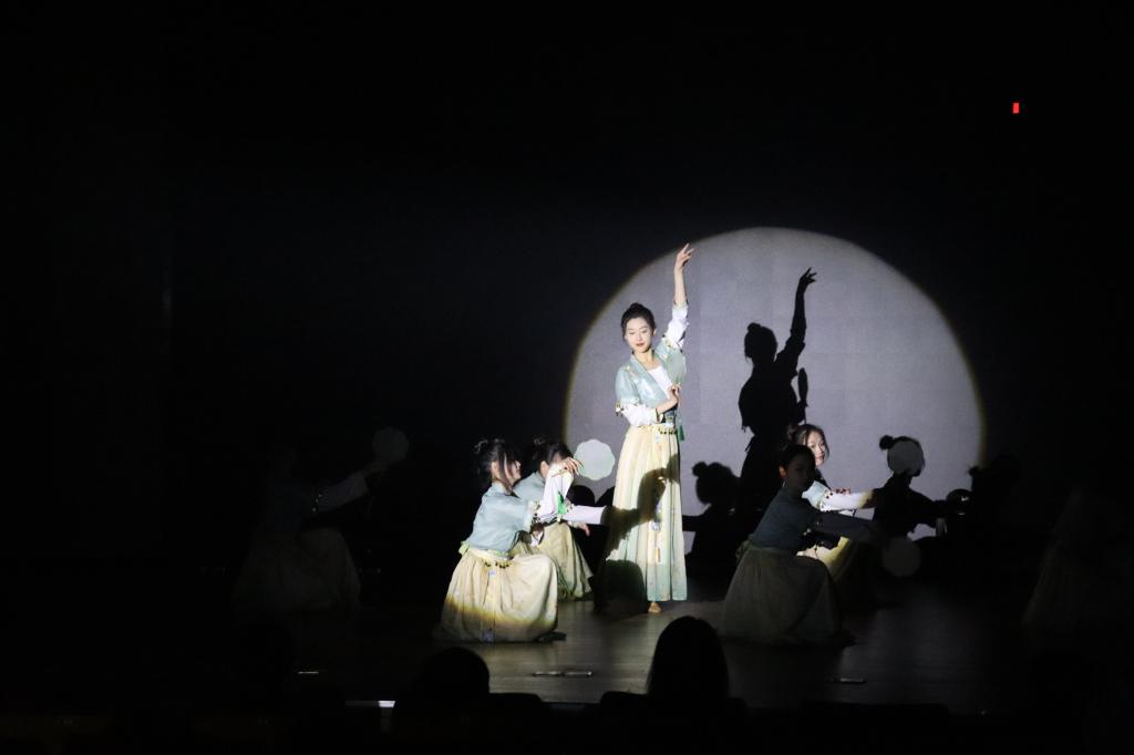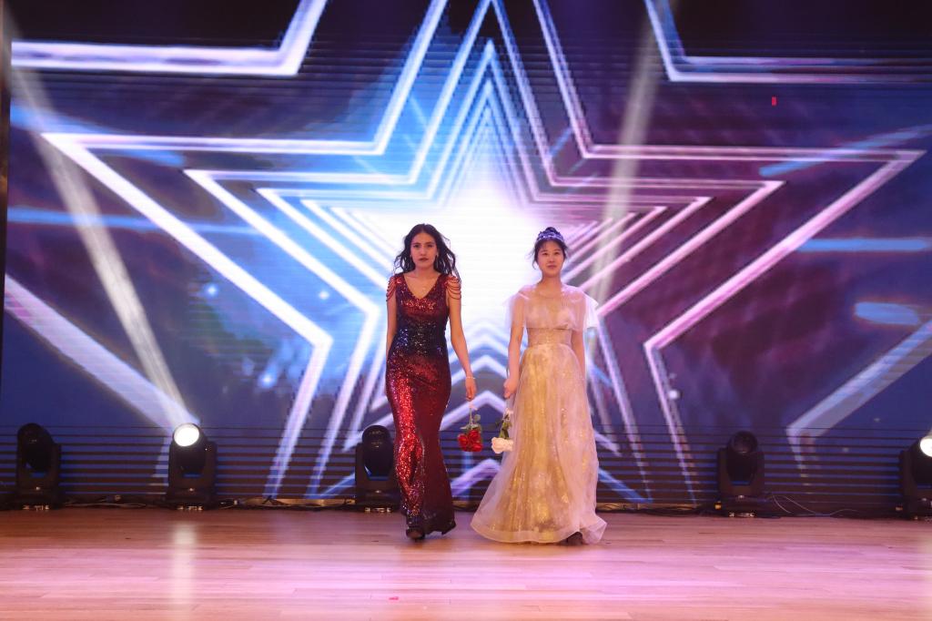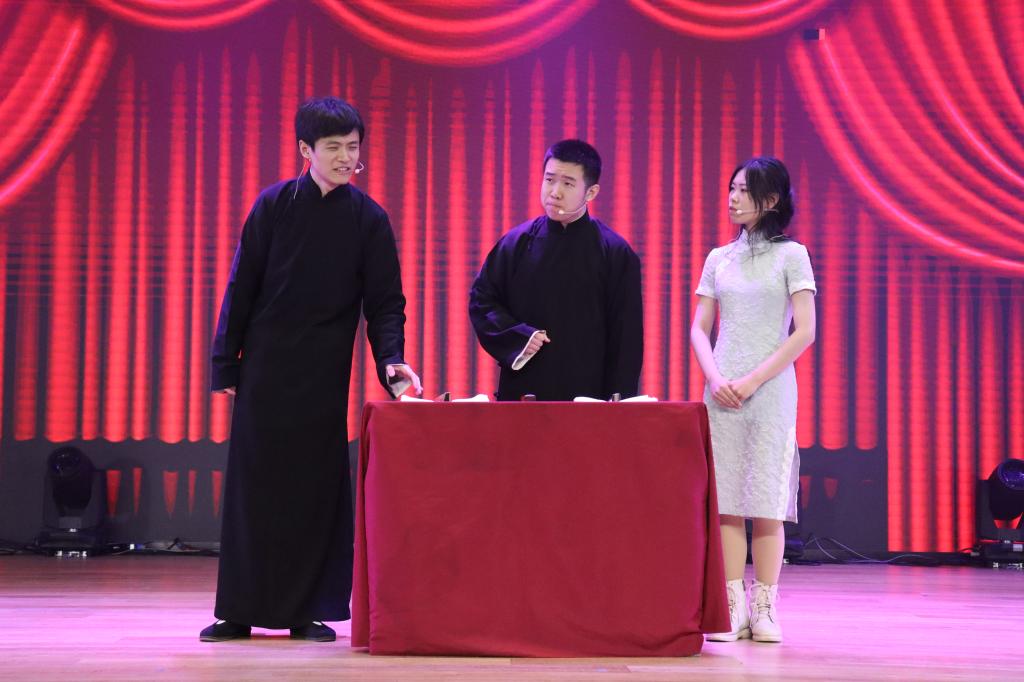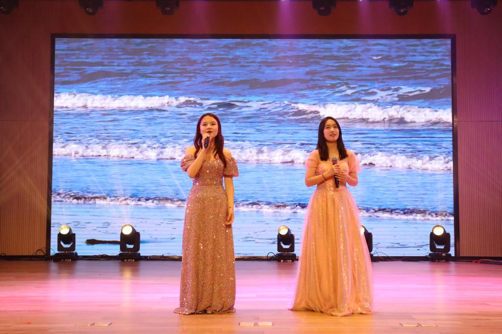 晚会进入第二章:春熙。研究生与本科同学带来的爵士舞蹈串烧《爱你》《what is love》《shut down》,各位舞者青春昂扬的舞姿引发全场阵阵喝彩;学生朗诵《青春礼赞新时代,峥嵘百年新征程》饱含敬意与激情,激励大家不做空想,不骛虚声,厚德笃志,守正创新;模特走秀《youth》将气氛带入高潮,男生女生们身着笔直的西装与华丽的礼服,步伐潇洒自信,神采飞扬,现场尖叫不断;师生合唱《带我去很远地方》以轻柔抒情的歌喉将梦想与自由倾注在音乐中、回荡在观众耳畔,展现了成人台小说