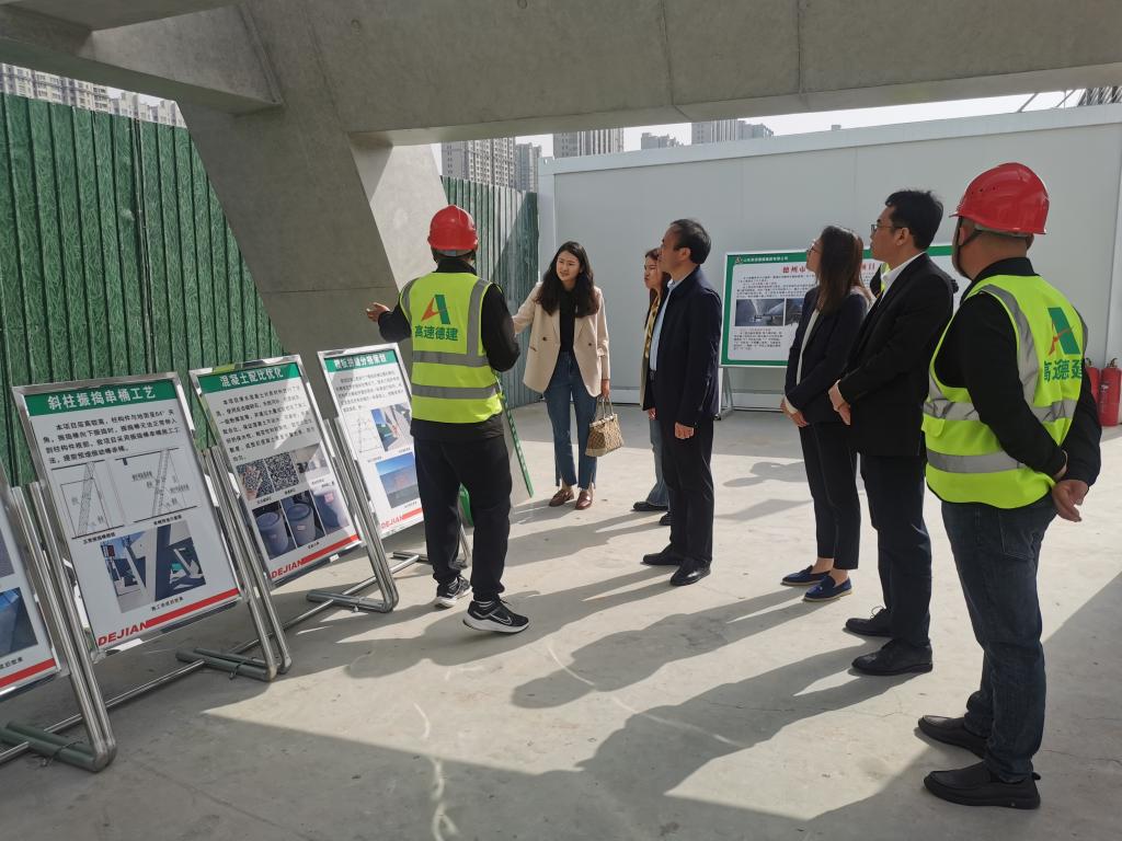 走访中,大家参观了德建集团的在建工程项目与集团党建基地,实地了解德建在绿色施工、智慧化工地建设与党建活动领域的创新成果。项目管理人员围绕现阶段施工重点、清水混凝土技术应用等内容,详细介绍了质量管理、安全生产等优秀经验。