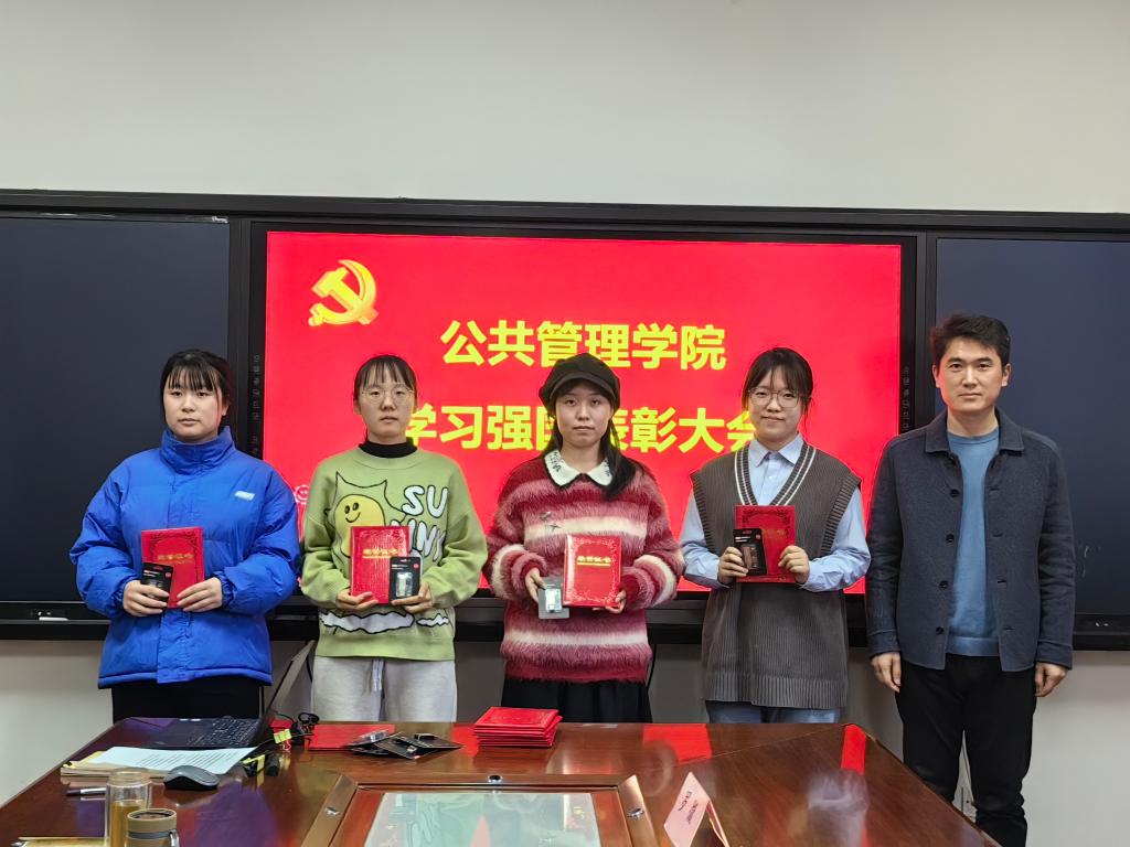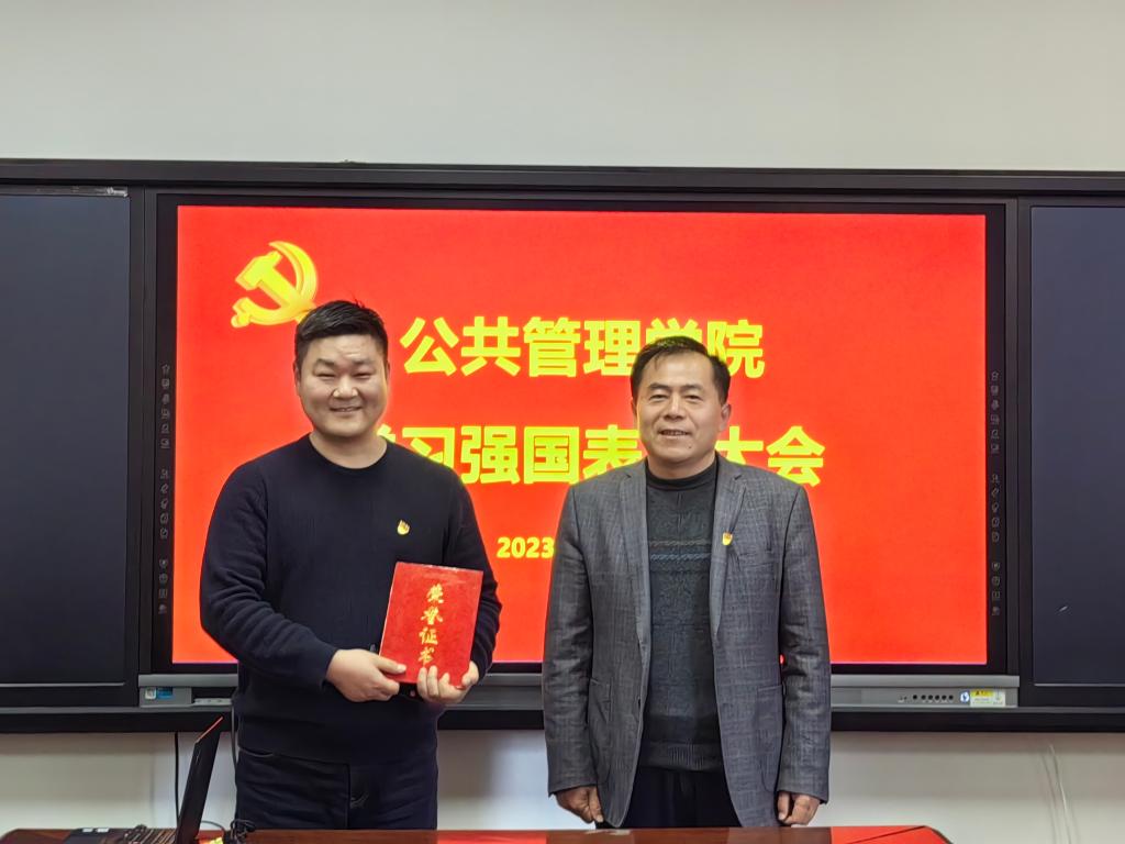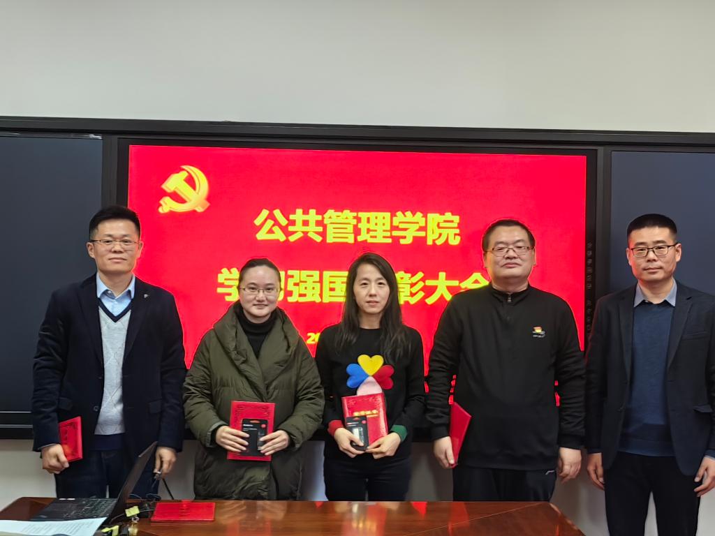 会上,罗微宣读了《关于对“学习强国”优秀支部和学习标兵进行表彰的决定》。《决定》指出:自“学习强国”学习平台推广使用以来,学院党委把用好“学习强国”平台作为学习贯彻习近平新时代中国特色社会主义思想的重要举措,迅速行动,积极部署,各支部书记积极响应,认真组织。通过读文章,看视频,比成绩,“晒”积分,涌现出了一大批勤学习、爱学习、乐学习的先进典型。为推进“学习强国”学习活动深入开展,截至2023年11月30日,根据积分排序,决定授予办公室党支部优秀支部荣誉称号,授予李昭娜、朱艳、张红凤、刘玉安、孙敬华、张宝峰、张溪等17名同志“学习强国”学习标兵荣誉称号。