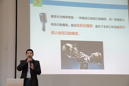 在交流会开始之前,张辉老师首先发言,他鼓励学生要树立远大的志向,珍惜在校学习时光,勇敢追求美好的人生。接着,受邀研究生登台讲述了自己的学习和工作经历,精彩表达了人生态度和人生信仰。魏汝严同学从学好工具性知识和应用性知识两方面,列举自身学习工作中的实例,勉励大家在大学中培养自身兴趣,拓展知识面,提高自身综合竞争力;孙丽同学讲述了她大学毕业到沿海工作又回到母校深造这三段人生宝贵的学习、工作经历,教导同学们要摆正心态,积极面对竞争,学会在困难中勉励自我,要从自身出发、向老师借力,培养良好的习惯,更好地适应社会需要;张冰超从“大学是什么”,“分阶段规划”,“总结大学四年关键点”三个方面介绍大学开阔眼界、丰富自身知识储备的重要性。