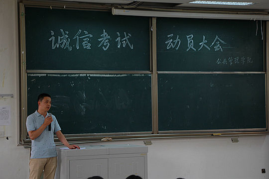 张辉老师向大家传达了学校加强考风考纪建设的有关精神,布置了期末考试的各项具体工作,告诫同学们在考试中要严肃考风考纪,杜绝一切作弊行为。会后,各班学生干部纷纷带头在诚信考试承诺书上签上自己的名字。