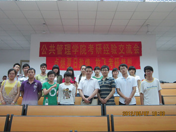 下午4点辅导员张辉老师主持会议正式开始。会上六位学生代表分别介绍了各自考研、考公务员经历,学习经验及心得体会。张辉老师进行了总结性发言,他指出要将08级同学考研考公务员心得变为自己的心得,给自己一个相对明确的努力方向。张辉老师表达了对08级同学的感谢与祝福,同时期待09级学生再创辉煌。
