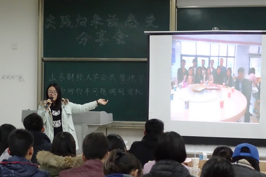 分享会由实践创新部副部长张耀政主持,他首先向同学们介绍了学校暑期社会实践活动“三千计划”的具体内容。随后,李恺鑫介绍了“城风团队”对济南网约车问题的调研情况,利用视频展示了“城风团队”整个社会实践过程,并围绕着“济南网约车问题”讲解了调研团队跟随网约车调研过程中遇到的困难和经历感受,阐述了实践活动的意义,分享了成员们集体合作的快乐。闫梦真和姜冲分别介绍了团队对“阳信县精准扶贫项目绩效”、“烟台市农村饮用水安全问题”的调研的情况,与同学们分享了调研过程中为克服语言障碍、居住问题所做出的努力以及村民们对调研活动的支持所感受到的温暖。三位队长通过精心制作的PPT课件,向同学们详细的讲解了组建队伍、确定课题、立项策划、实地调研、导师指导、调研报告的撰写等实践调研过程。分享了实践活动中的收获,通过自身体验向新生们提出了改进意见和建议。活动最后,成人台小说