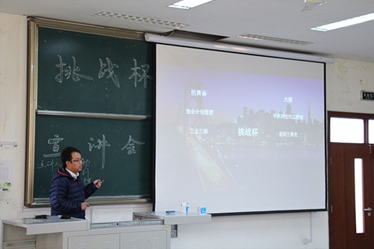 学生会科创部连合我校挑战杯协会举办的的第15届“挑战杯”宣讲会于明水4201教室顺利召开。2014级挑战杯优秀代表王舒畅、任万钊、郑增辉担任主讲,2015级、2016级部分学生代表参加了宣讲会。