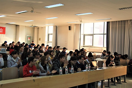 宣讲会开始,在进行了简单的自我介绍之后,主讲们分别介绍了自己参加“挑战杯”的心得和经验。首先由主讲王舒畅向在场同学们介绍了“挑战杯”的大致内容与流程,帮助大家了解“挑战杯”,同时分享了自己的参赛经历和心得体会,让大家更有兴趣参加挑战杯,为学校发掘更多的人才,并为有意向参加“挑战杯”的同学们在准备比赛的细节方面提出了宝贵的建议。随后主讲任万钊为在场同学们详细介绍了“挑战杯”的比赛项目,讲述了自身实践与体验的经过,使在场同学对“挑战杯”的兴趣更加浓厚,并为大家推荐了有助于实践调查的经济、政策、和娱乐三个方面的社会热点话题。主讲郑增辉在参赛指导、选题与作品指导方面给出了备赛提示,并与大家分享总结了参加“挑战杯”的意义。三位主讲介绍完比赛有关内容后,宣讲会进入了最后的互动答疑环节,在场学生向三位主讲发问,提出自己仍存在疑惑的内容,三位主讲也都一一进行耐心回答与解释,现场气氛活跃。