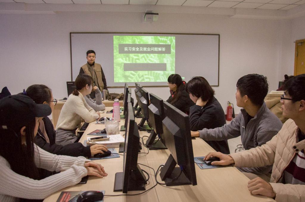 为了加强管理,提高学生外出实习的安全防范意识,促进毕业生圆满完成实习任务、顺利完成学业。12月3日,学院辅导员张辉老师在3702教室为毕业班学生开展就业安全教育及就业问题讲座。此次讲座,张老师就如何提防就业陷阱、如何选择公司、如何做到工作岗位安全以及如何保护个人信息安全和财产安全对大四毕业生展开多方面的教育。