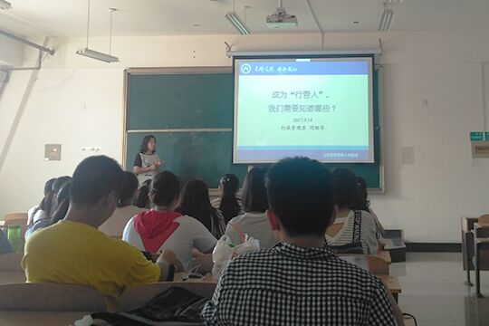 下午14:00,劳动与社会保障系刘玉安老师、行政管理系闫绍华老师、公共事业管理系丁宁宁老师、城市管理系秦艳红老师分别向17级的新生们介绍了成人台小说