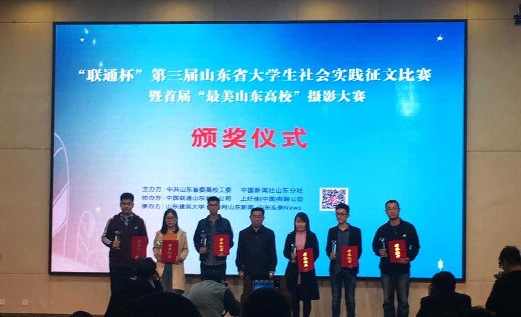 (通讯员 聂芸梅)10月15日,“联通杯”第三届山东省大学生社会实践征文比赛颁奖仪式在山东建筑大学举行,由李国强、宋燕老师指导,成人台小说