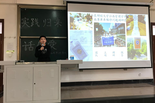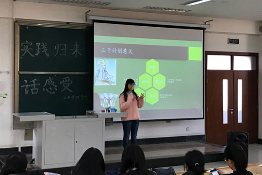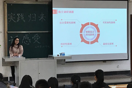 暑期社会实践优秀团队代表韦柔、郭云、陶佳,2016级挑战杯优秀代表吕绍峰担任主讲。2016级、2017级学生参加了本次宣讲会。