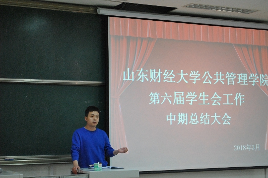 学生会工作中期总结大会在在明水校区4201召开,张辉老师、学生会主席团全体成员、各部门副部长和全体学生会干事齐聚一堂,共同参加会议。会议由学生会主席团成员刘瑞主持。