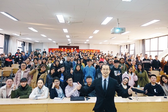 报告会伊始,宋老师在简洁的开场白和自我介绍后,直入主题,讲述了自己求学、考研、考博、成为Queen Mary University of London访问学者的经历,并鼓励正值青春岁月的莘莘学子为自己的梦想迈出脚步,勇洒汗水,努力拼搏,敢于尝试。妙语连珠的讲述引得现场掌声阵阵,气氛十分热烈,全场听众受益匪浅。