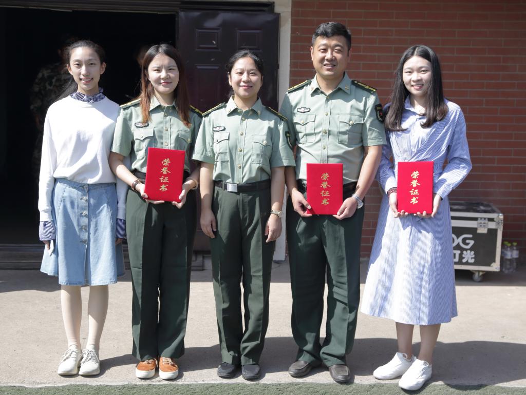 部分学生组成的海军手旗表演方队获“国防教育先进连队”称号;2018级新生辅导员李旭日、韩步彤老师被评为“国防教育先进工作者”;2017级刘璐、张津青同学被评为“优秀志愿者”;2018级孙亚坤等24名新生被评为“优秀军训学生”。