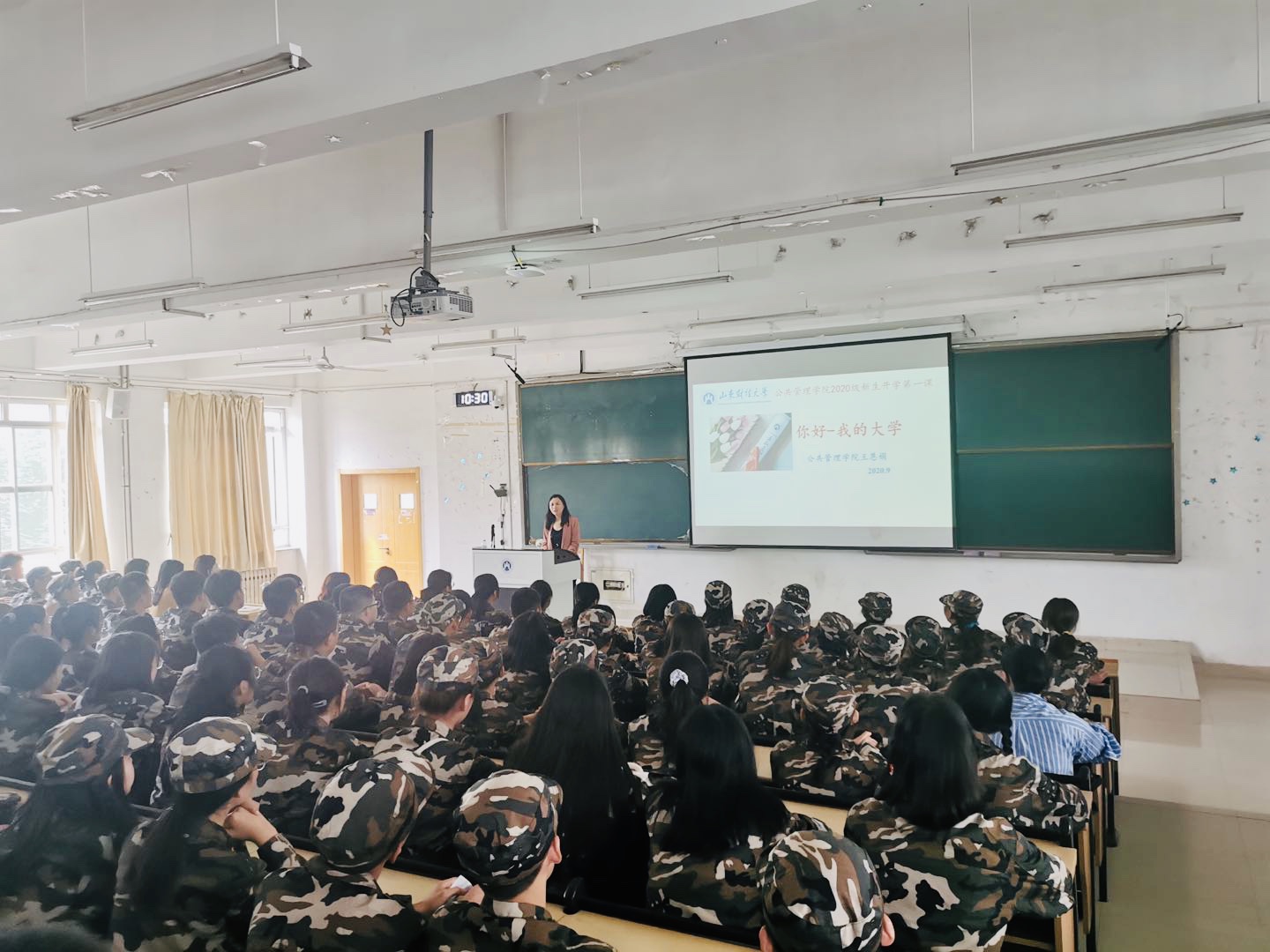 在圣井校区5206教室成功召开了一场别开生面的新生开学第一堂思政课。本次课程主讲人为学院团委书记、2020级新生辅导员王恩娟,2020级全体新生到场聆听。