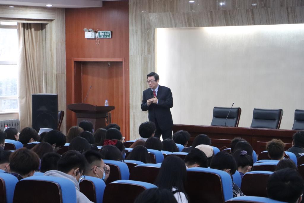 接着,李永刚教授对“大难兴邦,挫折练人”进行了生动讲解。李教授通过实例告诉同学们挫折能增强耐受力,逆境体验是成功的重要内容;列举周文王、司马迁等人的故事告诉同学们挫折是强者的进身之阶,弱者的无底之渊。