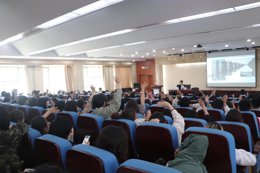 宋浩老师说:“我们可能会用大学四年的时间来怀念高中三年,但我们会用余生来怀念大学四年”。大学生活十分珍贵美好却又转瞬即逝,在青春韶华明确方向、脚踏实地是我们不断前行的基础。宋浩老师的专题讲座适时的给同学们带来了许多关于充实度过大学生活的建议,给同学们以很大的启发。整场讲座,宋老师风趣幽默,妙语连珠,同学们踊跃发言,掌声雷动。