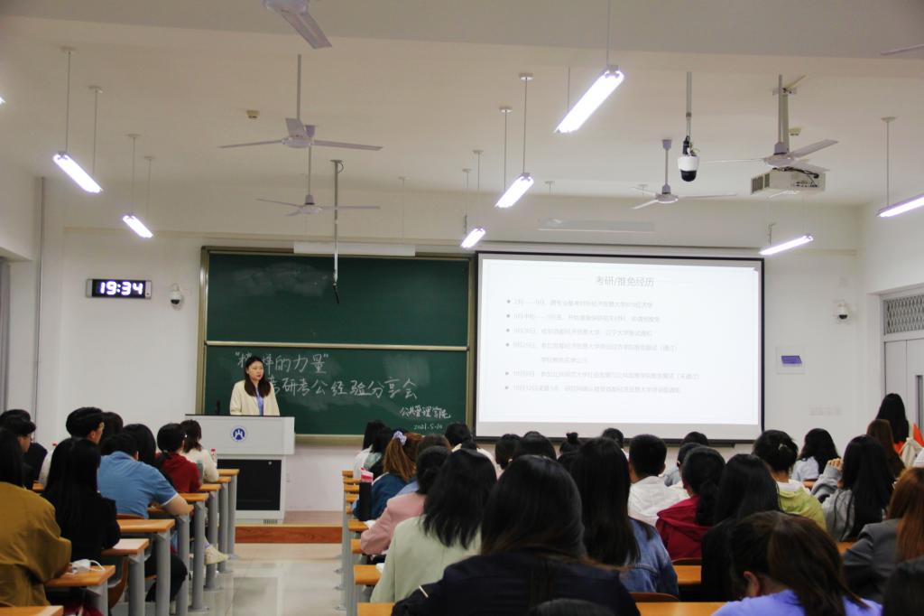 于5月10日下午六点半,在圣井校区8312教室成功举办 “榜样的力量”优秀学长学姐考研考公经验交流会。同学们踊跃报名,积极参加。