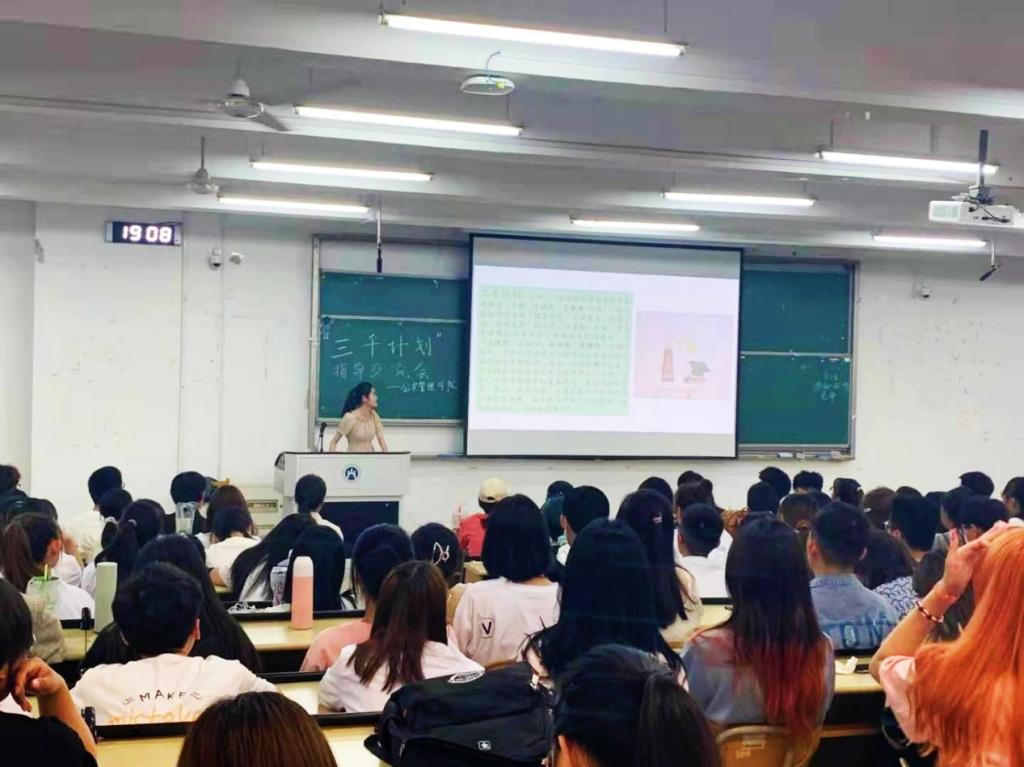 会议初始,实践创新部部长叶雨倩给同学们详细介绍了“三千计划”的基本内容,并对“三千计划”中的常见问题进行了解答。讲解后,同学们对“三千计划”有了更深一步的了解与认识,更加明确了“三千计划”的重要性,提高了大家的参与积极性。