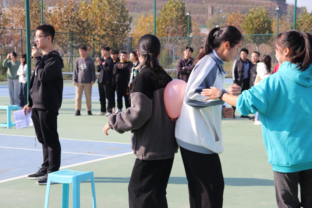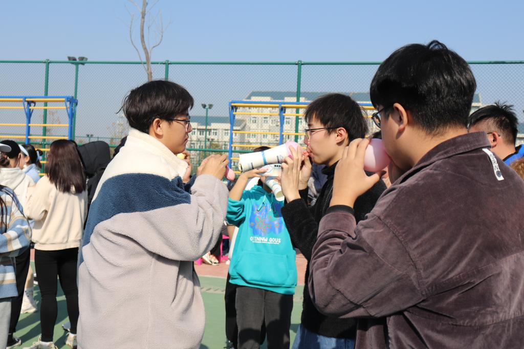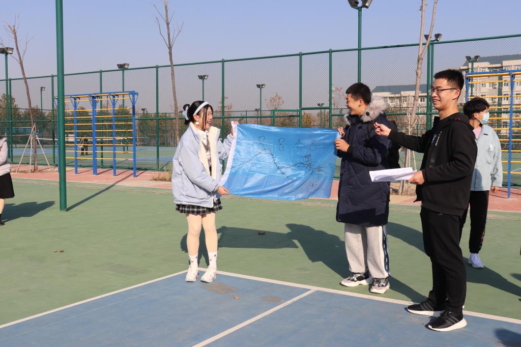 学生会各部门副部长及全体干事参加。本次素质拓展活动共设置了“直呼其名”、“背脊夹气球”、“集体造句”、“同心击鼓”、“口口相传”、“滚雪球”六个游戏。在游戏开始前,大家进行了随机分队,并设计了各自队伍的队旗,确立了队名与队歌。在游戏过程中,各队队员积极参与,相互协作,在看似简单的游戏中领悟团结互助、相互信任的道理;在体验式学习中提高沟通与协作能力;在欢声笑语中加强交流,增进了解。