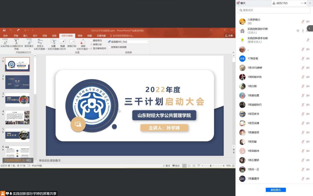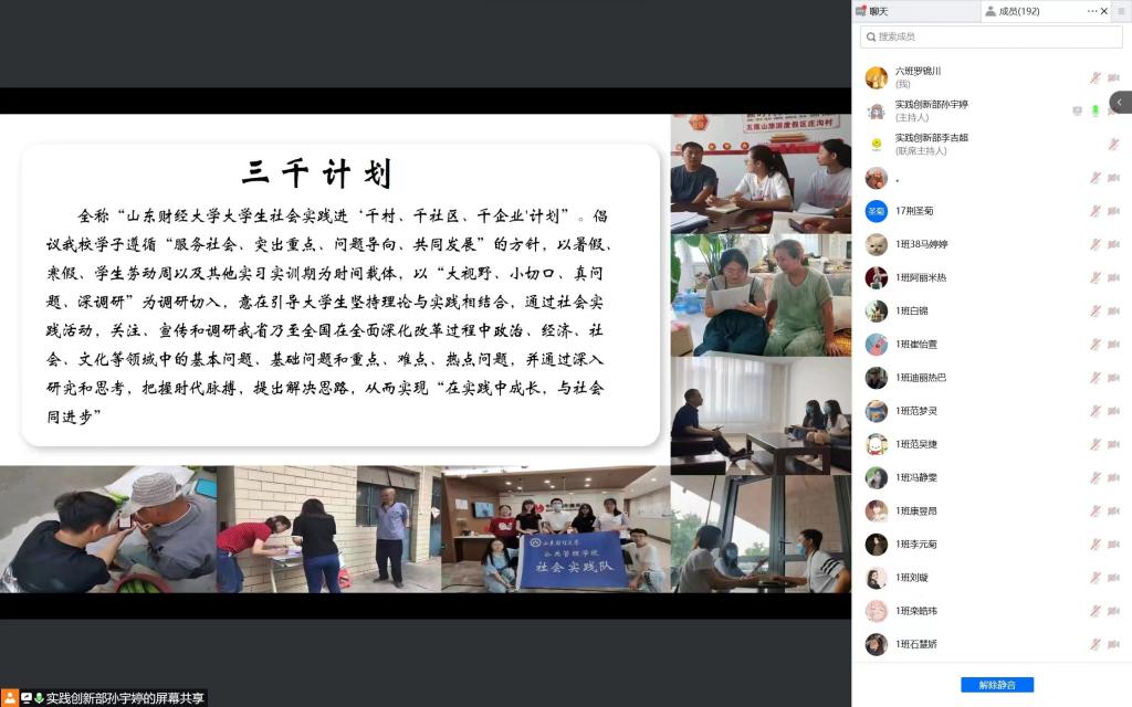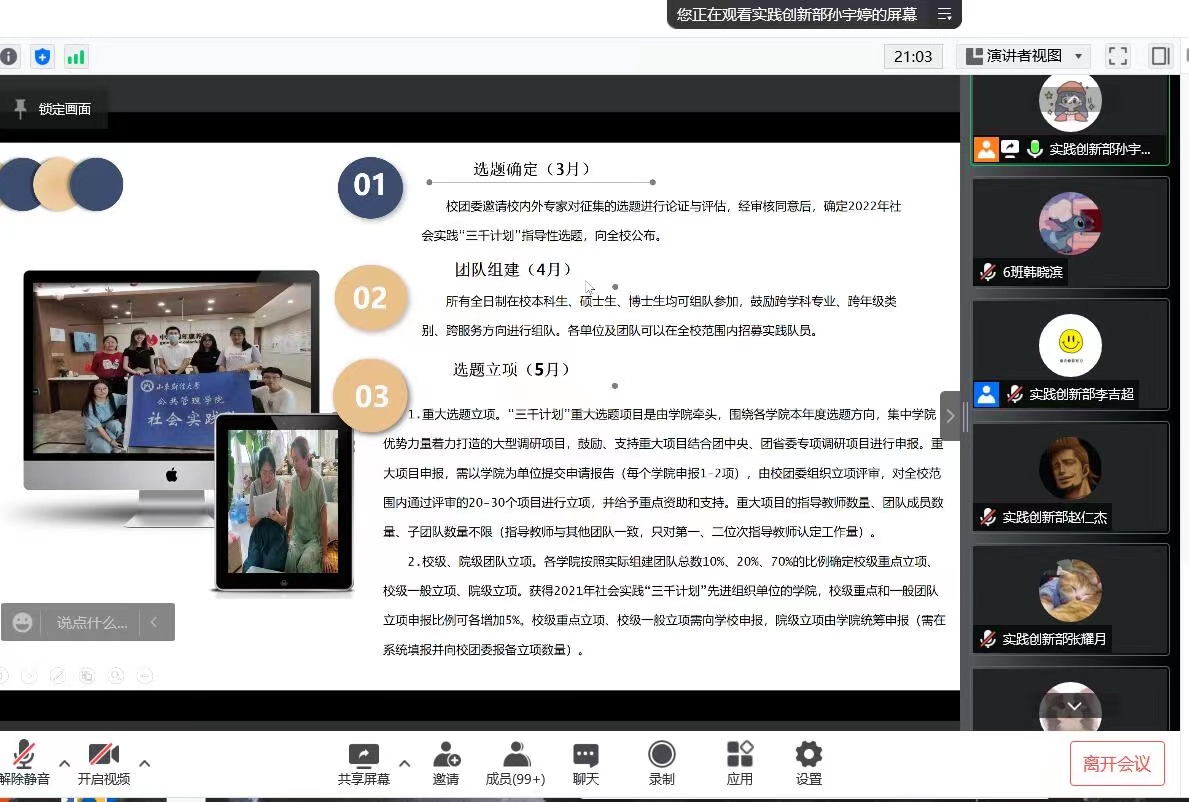 三千计划启动大会”,本次会议由实践创新部部长孙宇婷、副部李吉超同学主讲,全体2021级同学参加。