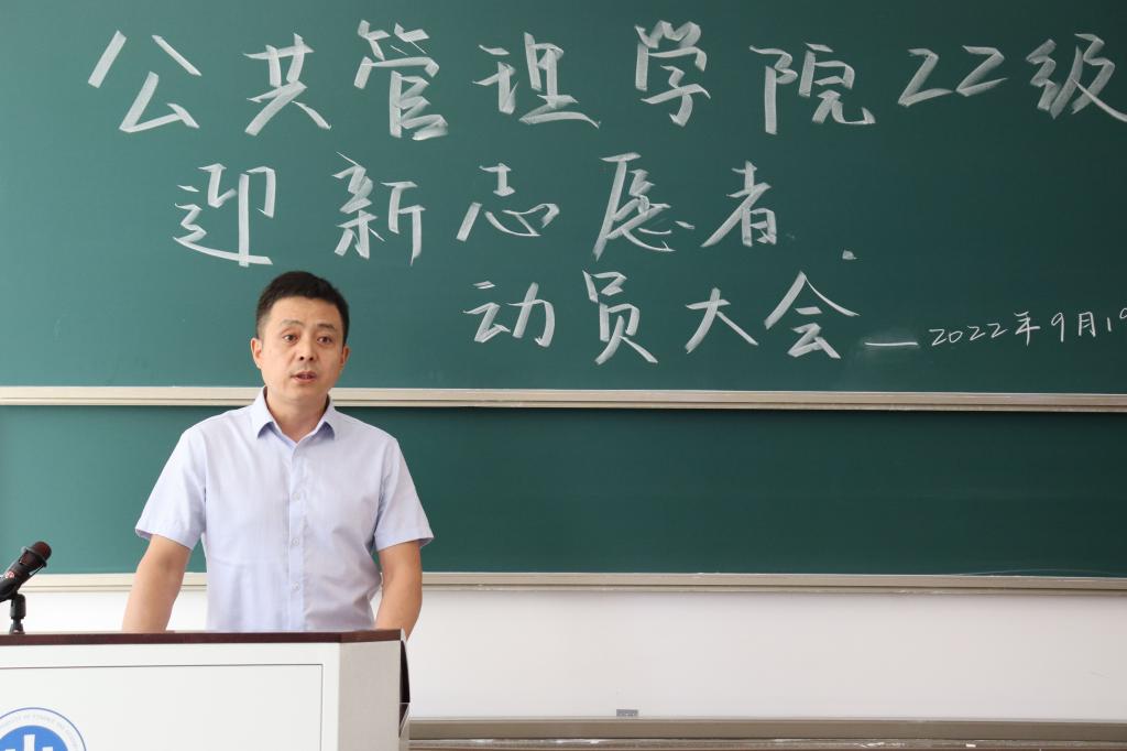 接下来由22级辅导员张志斌发表讲话,要求志愿者同学们做事要“事事有回音,件件有着落”,祝愿明天迎新活动顺利进行,志愿者同学带领新生同学尽快融入公管大家庭。