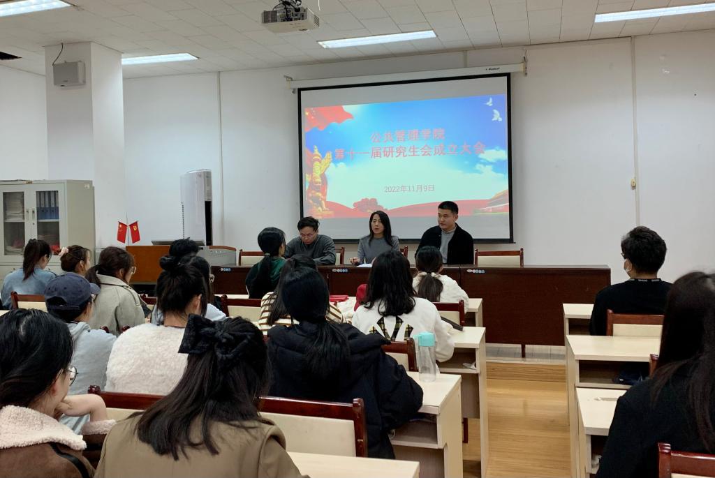 在4407教室召开学院第十一届研究生会成立大会,辅导员李昭娜,第十届究生会全体成员、2021级本分研究生及2022级全体研究生参加了会议。