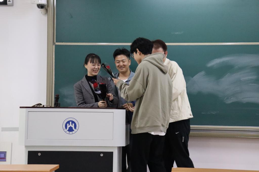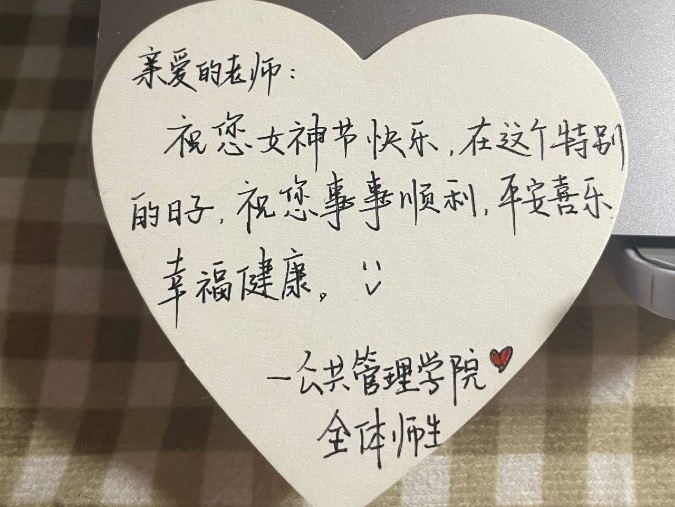 为了庆祝女神节的到来,学院为每一位女老师都准备了红色康乃馨,花语为温馨祝福、爱和关怀,代表了学院对女职工们的深切关怀,对各位女老师们衷心的祝福。各班班团和主席团成员提前一天为各位女老师准备贺卡。一笔一划,一字一句皆是满满的心意和祝福。节日当天,各班班长为老师们献上鲜花,同时全班起立,一起为老师送出节日的祝福。在这美丽的日子里,用芳香的鲜花、温馨的话语表达对女老师的尊敬。老师的脸上洋溢着幸福的笑容,真情温暖着每一位女老师的心田。
