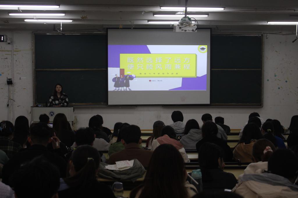 2024届级毕业生考研规划与就业指导专题讲座于圣井校区5-206教室顺利召开。本次讲座由就业办主任韩步彤主讲,2020级全体学生参加。