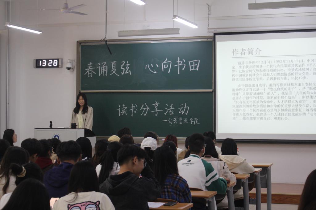 涵养身心、鸿鹄存志,明晰读书之意;品读经典、慎思明辨,感悟读书之乐。作为公管学子,应让书籍成为我们的精神食粮,泛舟书海、亲近书本,为精神打底,为人生奠基。与好书为伍、与经典为友,享受读书的快乐、谱写诗意的人生!