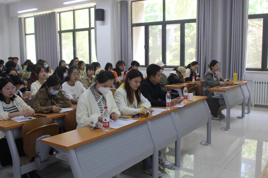 学生会学习部干事冯驿主持,圣井校区三个年级同学参加,学工办主任张辉,就业办主任韩步彤,2022级辅导员张志斌进行评审打分。