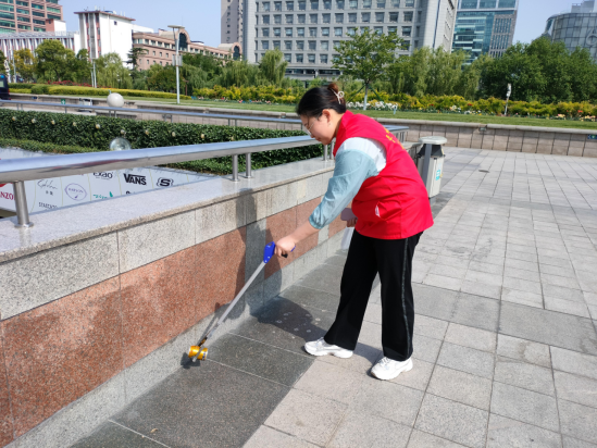 上午,志愿者们在泉城义工负责人的指导下,三人一组,分别在泉城广场不同方位进行垃圾清扫工作,如捡拾烟蒂、纸屑、矿泉水瓶等。并为众多外地游客指引方向,介绍周边景点,得到了游客们的认可和赞美。烈日炎炎,志愿者们忙碌的身影是广场最美的风景。