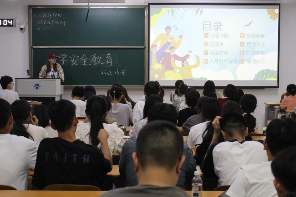 “新生安全教育”活动在圣井校区8号教学楼顺利举行,该活动由新生代班、代团主持,全体2023级新生参与活动。
